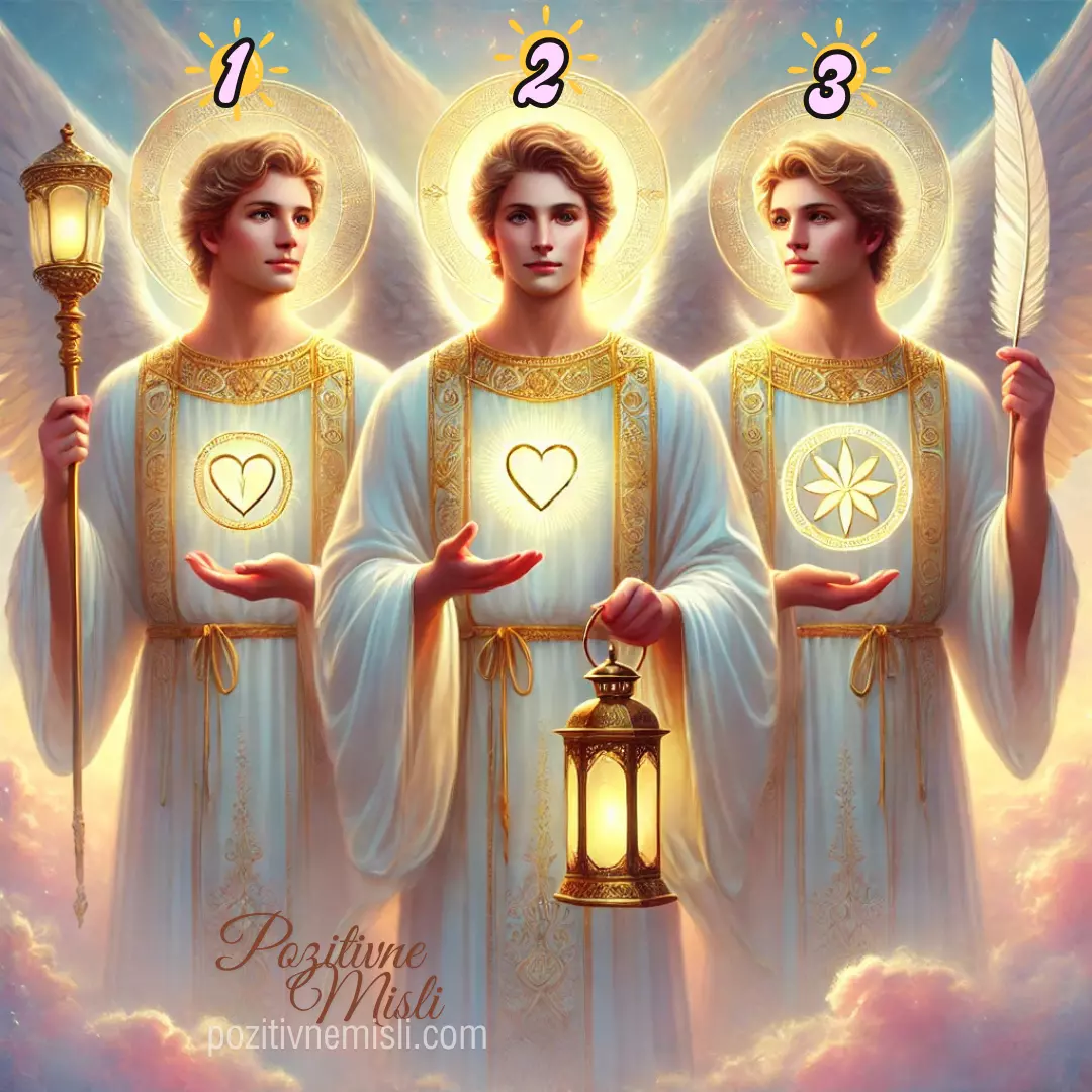 V času, ko potrebujemo vodstvo in podporo, nam angeli prinašajo sporočila, ki nam pomagajo najti notranji mir in jasnost. Na tej sliki so trije angeli, vsak s svojim posebnim simbolom in energijo.