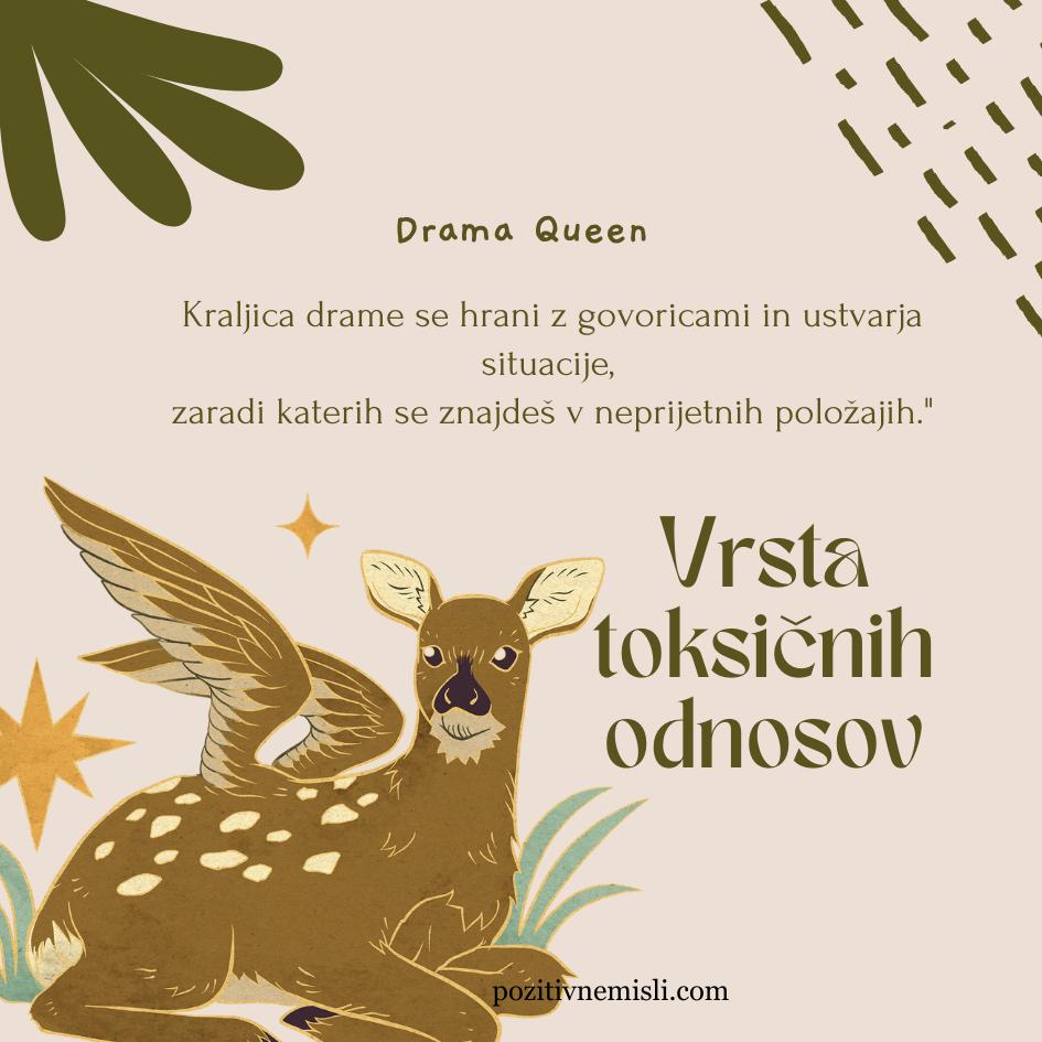 Queen drama odnosi so polni pretiranih konfliktov, čustvenih izbruhov in stalne potrebe po pozornosti. Ti odnosi so izčrpavajoči, saj se zdi, da je drama vedno v središču interakcije, kar pogosto vodi do nestabilnosti in negotovosti.