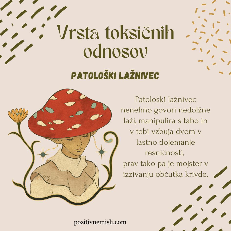 Ta vrsta toksičnih odnosov je značilna po nenehnih lažeh in pretvarjanju, ki lahko povzroči globoko čustveno škodo in zmedo pri osebah, ki so jim blizu. Identificiranje patoloških lažnivcev zahteva pozornost na doslednost njihovih zgodb in njihovo vedenje skozi čas.